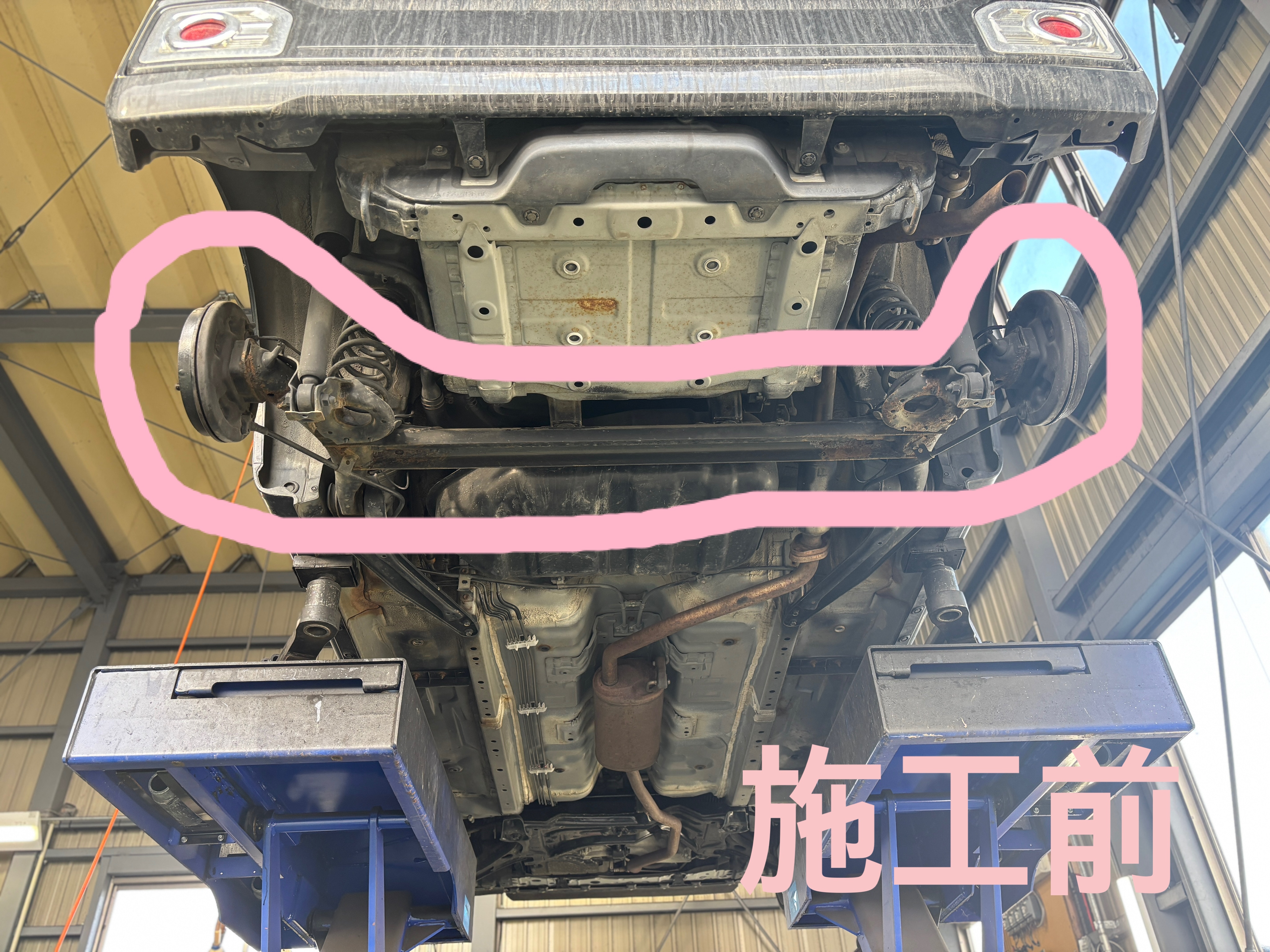 最近ではダイハツ、トヨタ車でリアアクスルの不良が多く見られ、今回は一部が錆びて